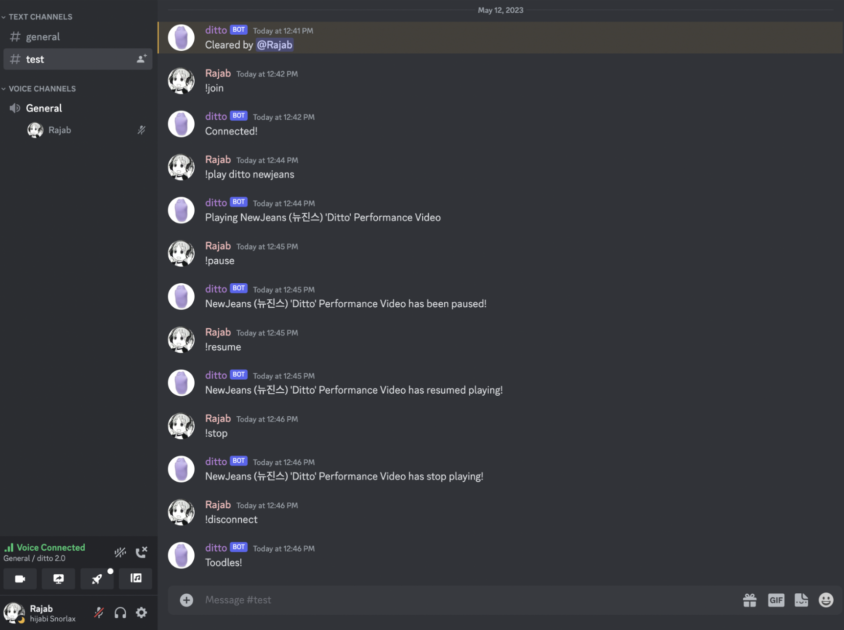 Basically, you input a song for the bot to play and it plays the song! From there, you can pause, resume, or stop the song!